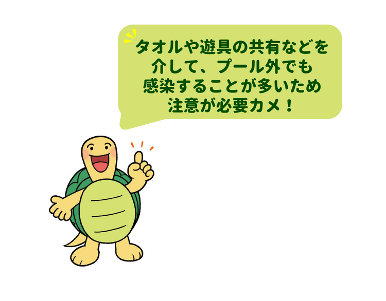アデノウイルスは塩素に比較的弱いですが、適切な塩素消毒が行われていないプールや、消毒が不十分な状況下では感染のリスクは依然として存在します。