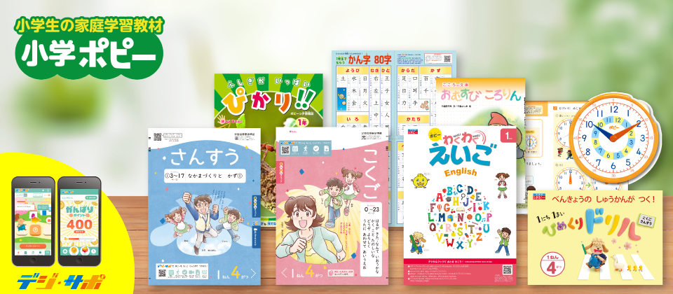 『小学ポピー』は、書いて学ぶ「ワーク」と楽しく毎日の勉強が続けられる「デジ・サポ」で学習習慣の定着をサポートしていきます。