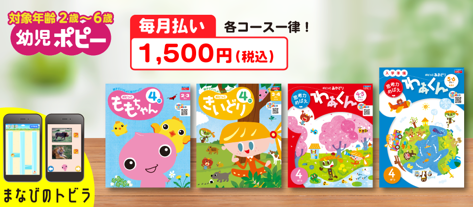 幼児ポピーは、お子さまの成長に本当に必要な内容を充実させたシンプルな教材。