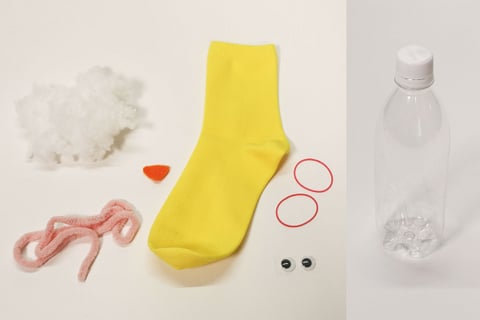 3.水を入れたペットボトルに靴下をおおいかぶせます。