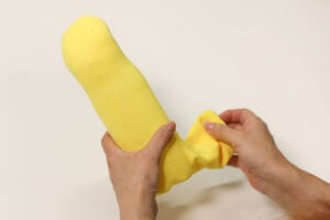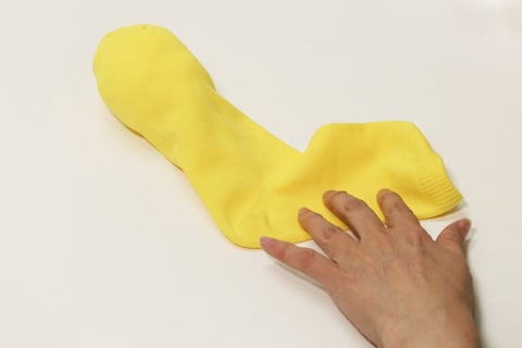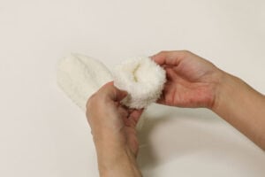 1.靴下のはき口部分を外側にぐるぐる巻きます。つま先部分は残します。