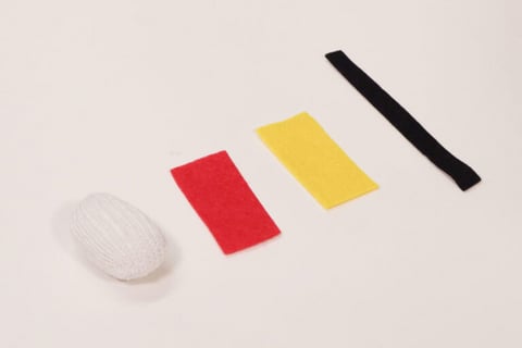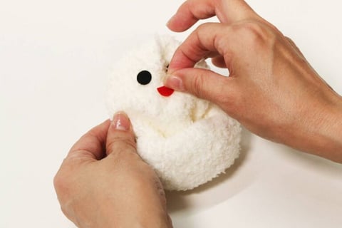 5.動く目とくちばしの形に切ったフェルトを接着剤で貼り、顔を作ります。