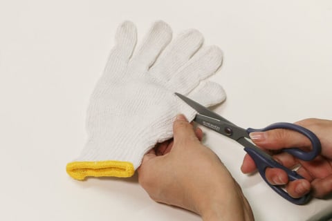 1.軍手の指部分を付け根のあたりで、5本それぞれ切り取ります。