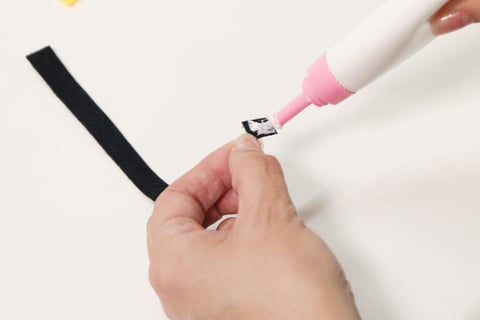 面ファスナーをフェルトに接着剤で付けたら、しっかり乾かして固定します。