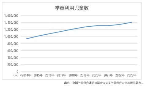 全国学童保育連絡協議会が毎年実施している学童保育の実施状況調査によれば、学童の利用者は年々増えています。共働き世帯が増えたことが大きな要因ですが、子どもが安心して遊べる公園が近所にないなどの居場所の問題、多くの子どもが学童や習い事で忙しく、子ども同士の予定が合わないなどの遊ぶ機会の減少、気温の高い夏に外遊びしにくいなどの気候変動の影響など、実にさまざまな要因があわさって、多くのおうちのかたがお子さんの放課後の居場所確保に頭を悩ませています。