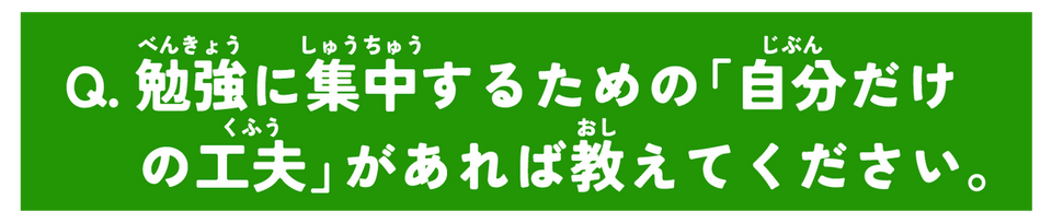 >勉強に集中するための「自分だけの工夫」があれば教えてください。