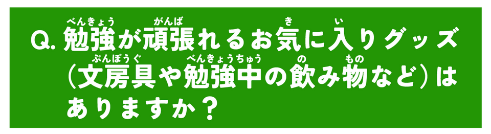 >勉強が頑張れるお気に入りグッズ(文房具や勉強中の飲み物など)はありますか?