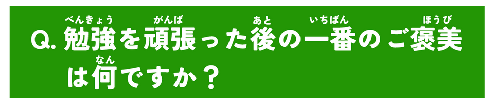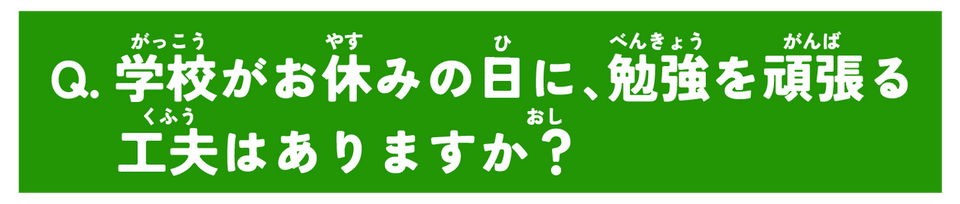 ・朝に勉強始まり、終わったら遊びに行って良いことになっているので、遊びに行く時間まで勉強する(そらさん)