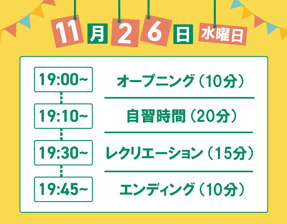 ※自習内容は自由ですので、お好きな教材をお手元にご準備ください。