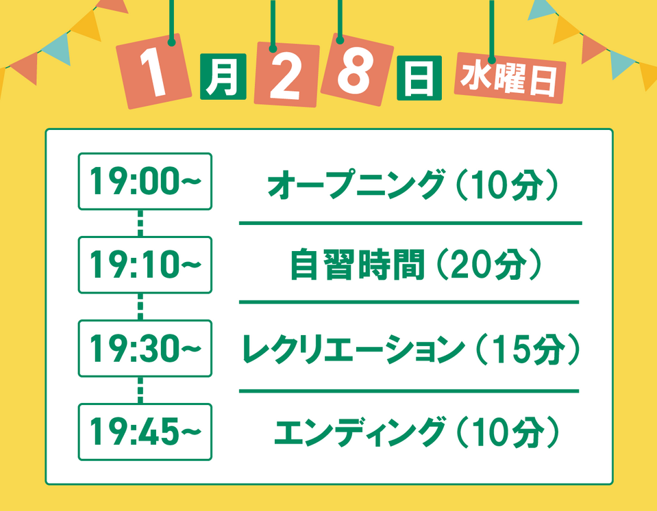 ※自習内容は自由ですので、お好きな教材をお手元にご準備ください。