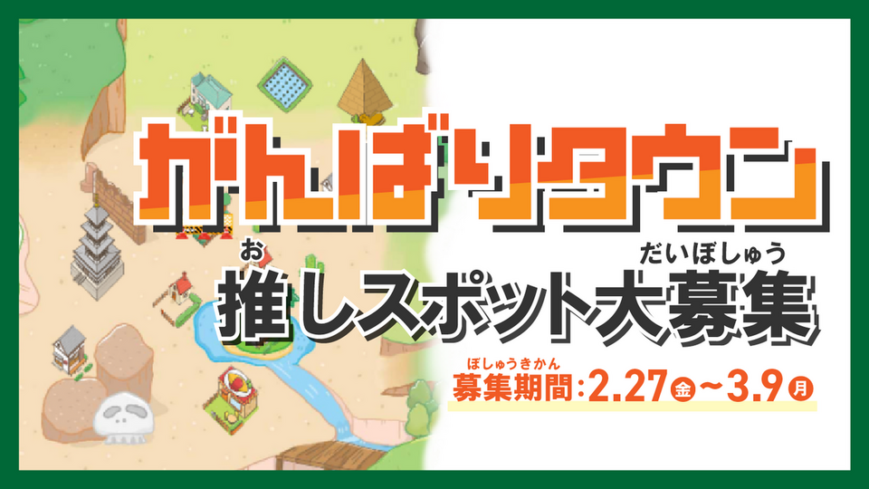 今回は、その成長したがんばりタウンの推しスポットを大募集するよ!