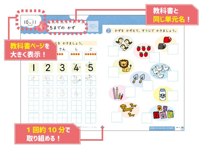 1日10分程度で取り組めるから、やる気いっぱいの1年生から学びの習慣が身に付きます。