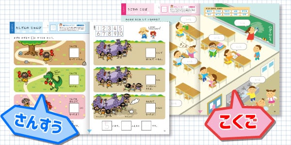 取り組むドリルは「こくご」「さんすう」の土台になる内容。