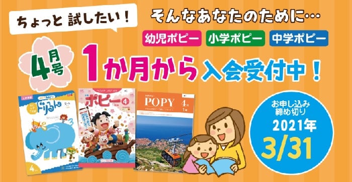 1,100円でたくさん楽しめ、しっかり学べ、ポピーの特長やお子さまの反応もよくわかります。実際に使って、確かめた後で、本入会するかをご判断いただけます。