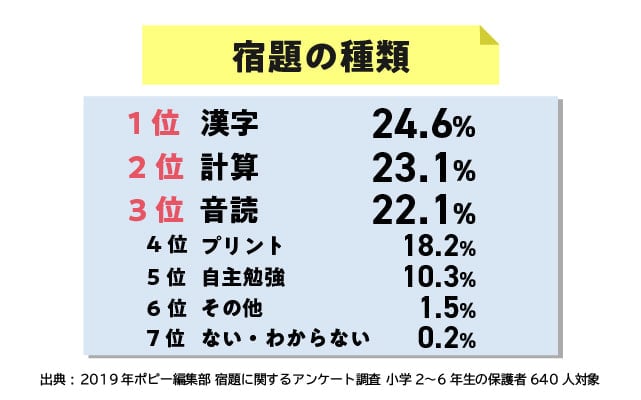 保護者の中には「自分の時代には宿題がなかった」という人もいるかもしれませんが、宿題は定番中の定番です。
