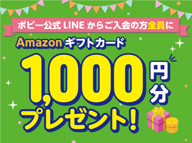ポピー公式LINEからのご入会でもれなくAmazonギフトカード1,000円分をプレゼント!
