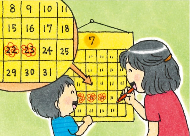 できていたら、カレンダーに花まるをつけたり、「がんばっているね」「計画どおりにできているね」と声をかけたりして褒めてあげてください。