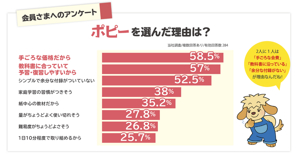小学ポピーは他の家庭学習教材と比べても、リーズナブル。