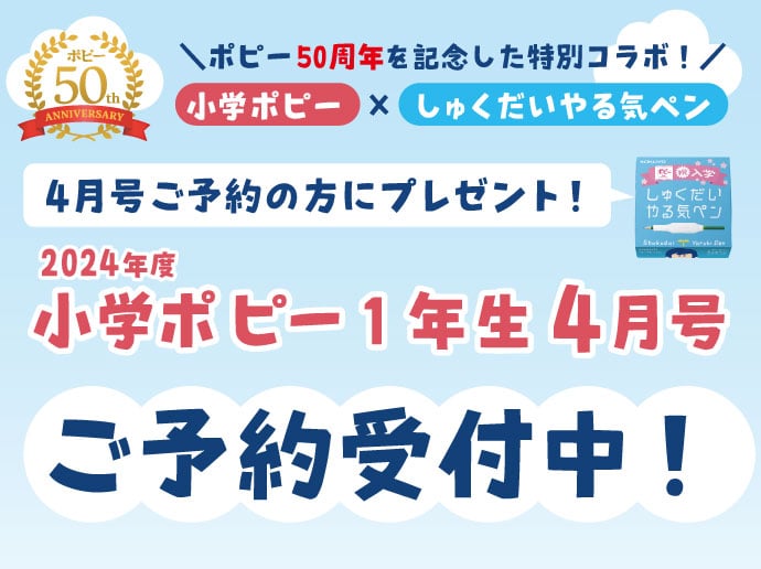 2024年度小学ポピー1年生4月号を予約すると、話題のIoT文具「しゅくだいやる気ペン」がもらえる!