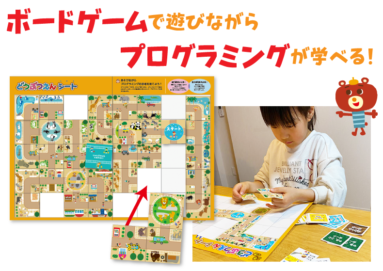 実際にカードを動かしながら考えることで、プログラミング的思考の頭の使い方に慣れていきます。