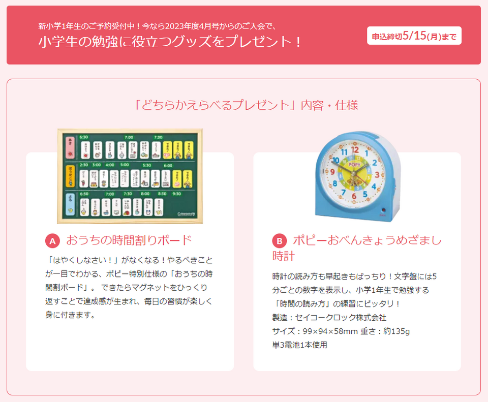 ◆Bコース:ポピーおべんきょう目ざまし時計
