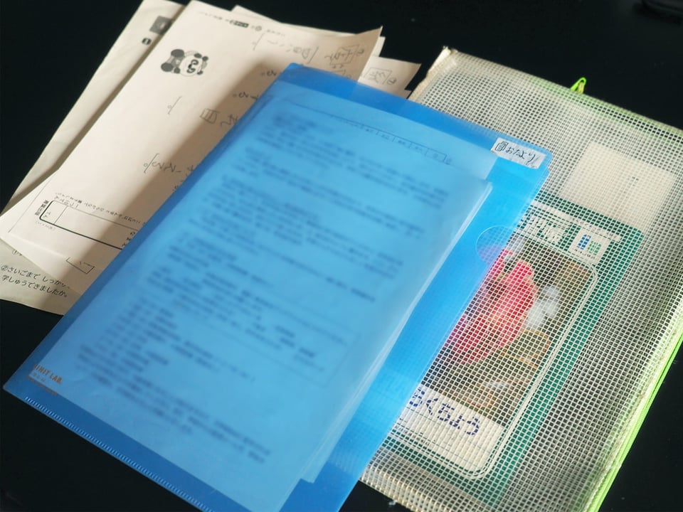 わが家は親へのプリントを入れる青いファイルを用意し、「おうちの人へのプリントはここに入れてね」「ママにはこの手紙がとっても大事。だから忘れずに持って帰ってきてね」と長女に言って聞かせています。