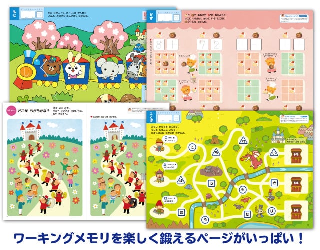 間違い探しや迷路、見つけ遊びなど、子どもが好きな遊びを通してしっかり学習できます!