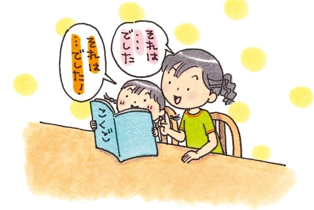 音読が苦手な子には、まず大人が文章の一部分を読んで、それを追う形で子どもに読ませます。
