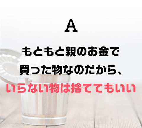 【A】もともと親のお金で買った物なのだから、いらない物は捨ててもいいを選んだ人は…