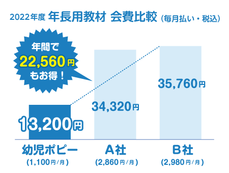 ※2022年度 年長教材会費(毎月払い・税込)で比較しています。