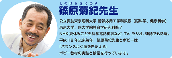 幼児ポピーはは脳の専門家・篠原菊紀先生(諏訪東京理科大学教授)の指導・監修を受けています。