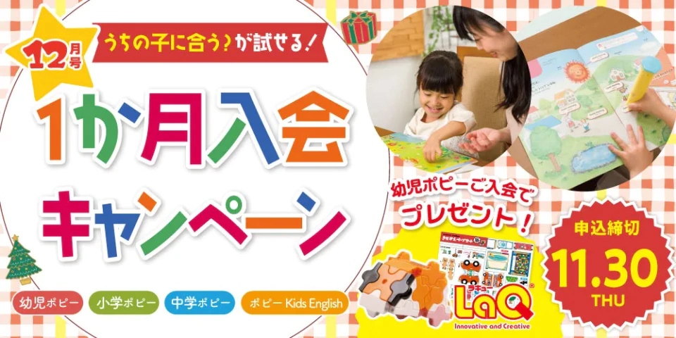 ただいま12月号1か月入会キャンペーン(中学ポピー3年生を除く)を実施中です!