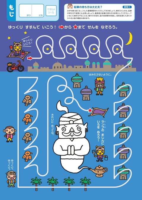 はみ出ないように書こうとすることで脳に刺激が与えられ手先を調整する力が鍛えられます。