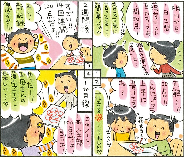 文字通りのテストではなく、必ず100点が取れるテストを用意してあげましょう