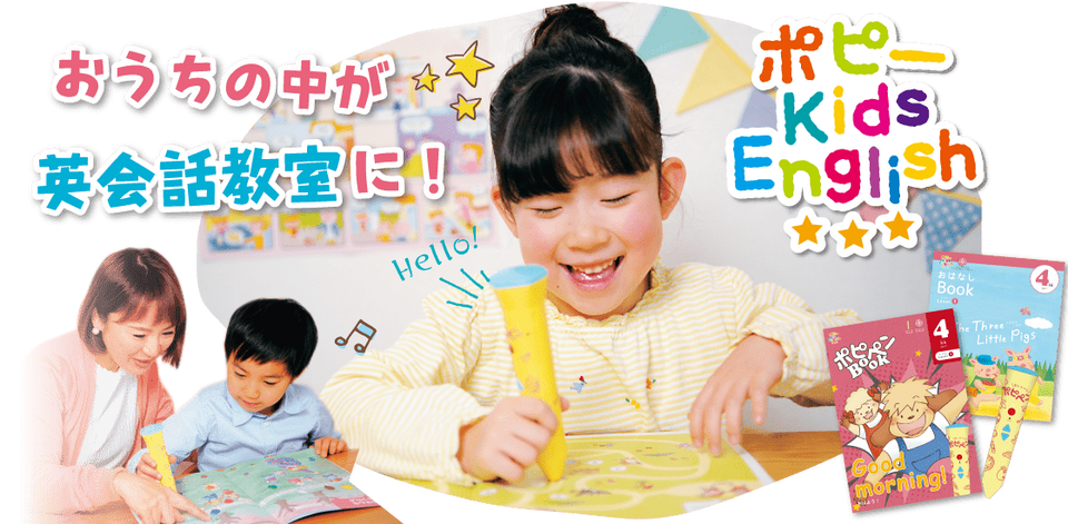 幼児から低学年向けの『ポピー Kids English』は音声ペンを使って楽しく学習できる英語教材!