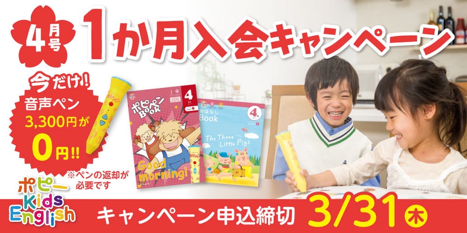 「月刊ポピー」は、1/6(木)~3/31(木)まで4月号1か月入会キャンペーンを実施しています!