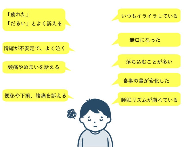 つらい症状が続く場合は、学校の担任の先生や養護教諭への相談、