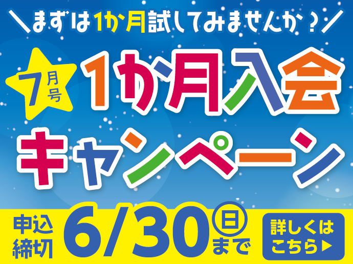 ただいま7月号1か月入会キャンペーンを実施中です!