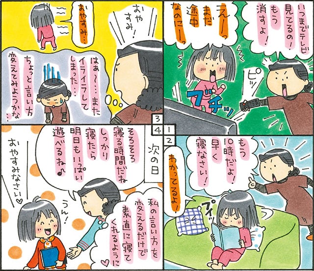 いつまでも寝ない子になんと声をかけますか?