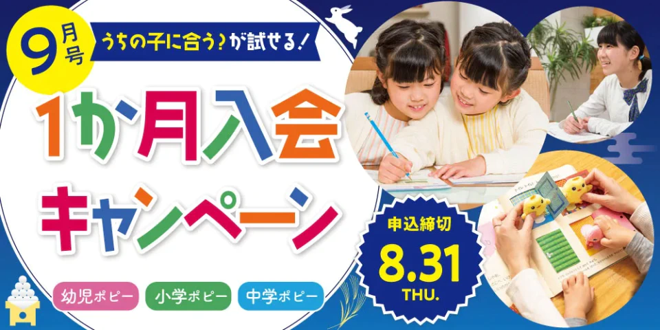 ただいま9月号1か月入会キャンペーンを受付中です!(ポピー Kids Englishを除く)