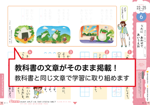 「こくごワーク」は、教科書と同じ文章を掲載。授業で習った内容がしっかり理解できます。