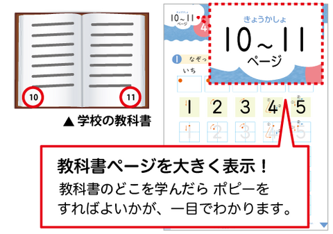 ポピーの「ワーク」は、お子さまが学校で使う教科書に沿って編集されており、授業に合わせての予習・復習ができます。