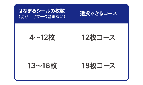 ※「はなまるシール」の枚数がたりなくても、事項の「対象コース」に従って、切り上げてお申し込みいただけます。
