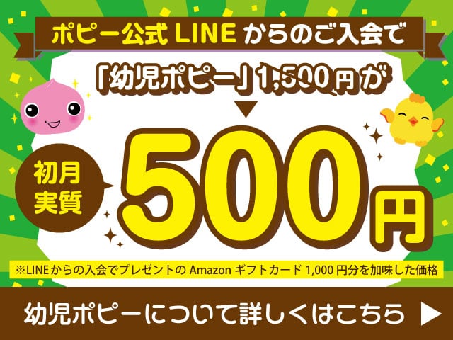つまり今なら、月額1,500円の「幼児ポピー」が、なんと実質初月500円で始められます!