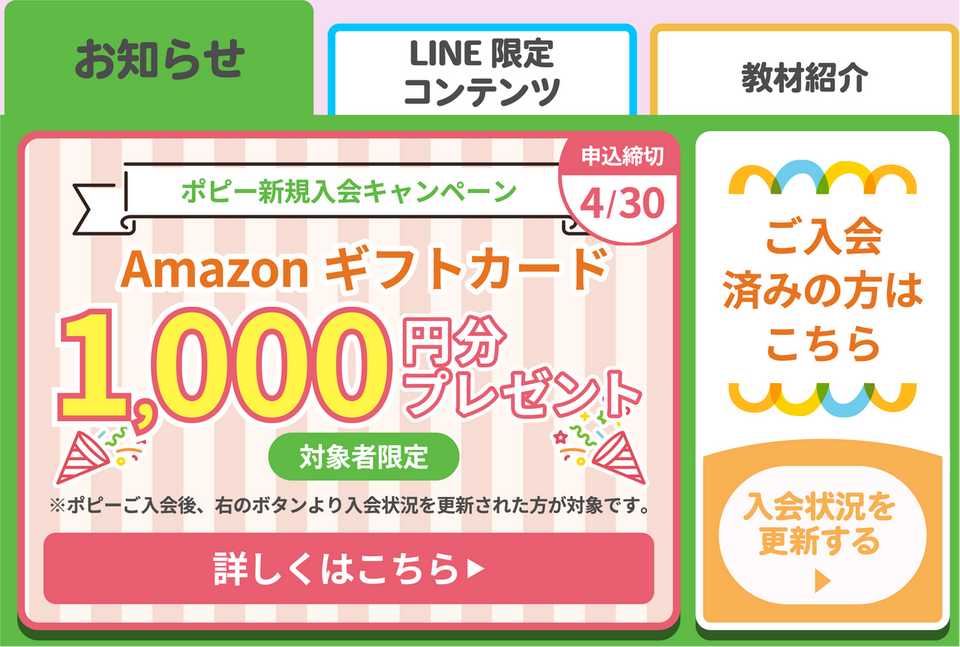 ポピー公式LINEからのご入会でもれなくAmazonギフトカード1,000円分をプレゼント!