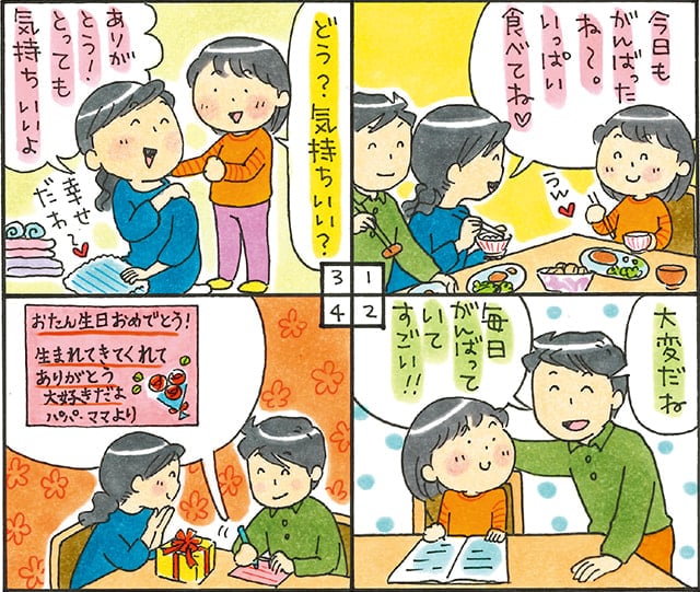 子どもだけでなくパートナーのこともほめれば、家庭の雰囲気がどんどんよくなります。