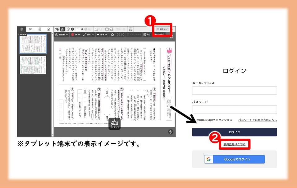 デジタルブックで取り組むときは、タブレット以上の画面サイズの端末で、タッチペンの使用をおすすめします。(タッチペンは付属していません)