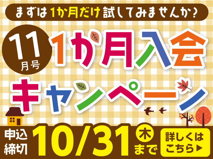 1か月からの入会でも対象となるお得なキャンペーンですので、ぜひこの機会にお申し込みください♪