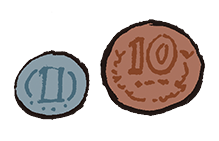 【用意するもの】一円玉10個以上と十円玉2個。通帳のようなもの(手帳、メモ紙など)