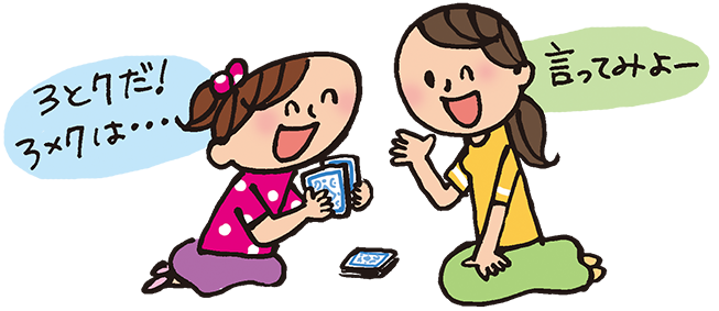 ・うちでは、九九の勉強をトランプ遊びにアレンジしました。札を2枚とって、即興でかけ算をして正解なら、その札をもらえるルール。ゲーム式がおもしろかったのか、毎日「九九トランプ(うちではそう呼んでいました)やろうよ」とさそってきました。 最初は、1~9のカードを使っていましたが、絵札(11~13)も交ぜるようになり、九九が大好きになりました。(静岡県/Y・Sさん お子さんは4年生と2年生)